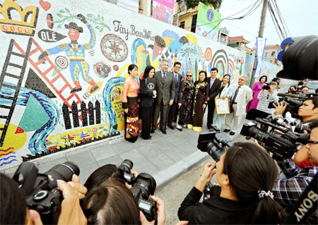 The mosaic mural came from an idea by Thuy, a journalist and painter who works for the Hanoimoi newspaper with full support from the city’s authorities.