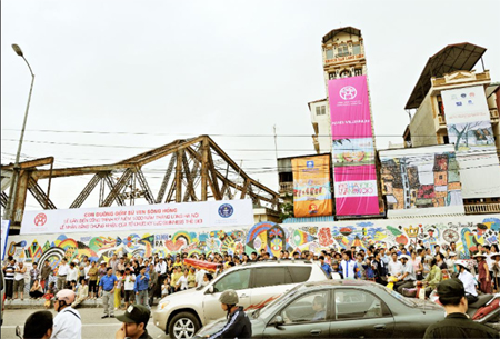 Now, with its one section alone from An Duong Terminal to Tan Ap Terminal on Yen Phu Street, covering 1,570,2m2, the Hanoi mural has set a new Guinness World Record.